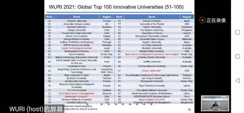 On June 10th at 9.00 pm Beijing time, the online conference for the 2021 World University of Real Impact Ranking (WURI) was held. Director Liu Ting of the International Exchange and Accreditation Office of the Business School and others attended the meeting.