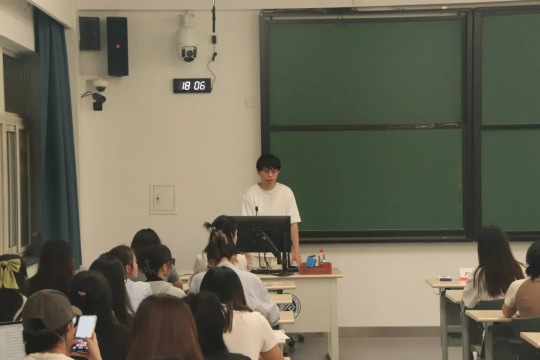 张紫阳学长则从时间安排、笔试、面试三个方面进行分享。他建议有意向参加国考、京考、省考的同学应结合个人时间合理安排报考进度。在笔试方面,他不仅推荐了优质的学习平台和教师资源,还强调了申论写作需要多写多练多积累的重要性。至于面试环节,他建议我们可以通过报班提升表达能力,并鼓励大家勇于开口练习,积极背诵积累素材,保持自信的态度,面试过程中要注重同考官的眼神交流;对于怯场且表达能力较弱的同学而言,也不要过于担忧,要勇于克服自身短板,考试前做好充足准备,答题时逻辑清晰、有着重点、言语流畅。