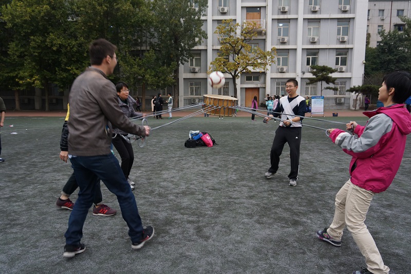 10月21日,赌博app下载 教师代表队七十余人参加了学校组织的趣味运动会。参赛选手不畏深秋雨后的寒冷,热情参与了“沙包攻垒”、“集体跳绳”、“毛毛虫竞速”、“三砖渡河”、“齐心颠球”等项目,并自发组织踢毽子等活动。趣味运动会为广大教师提供了强身健体、沟通交流的机会,为课余生活增添了无线欢笑和乐趣,同时也巩固了赌博app下载 的集体凝聚力和团结协作精神。