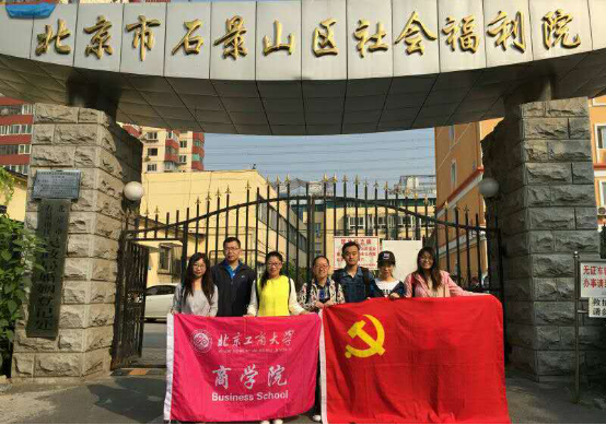 2016年9月30日清晨,凉风习习并没有阻挡商研1633班党支部志愿服务的热情。为发挥我党支部服务社会的功能,提升党员志愿服务的素养,树立良好的工商学子风采,发挥党员的模范带头作用,商研1633班党支部5名同志和一名学姐一名学长参与今日赴石景山社会福利院的志愿服务活动,为那里的老人带去关怀和欢乐。