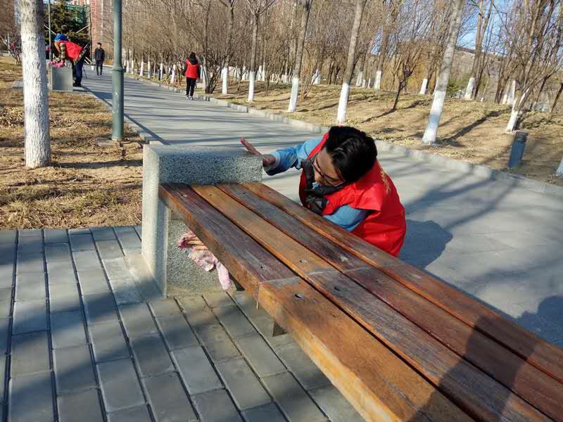 志愿者的身影,春寒料峭不减学生党员的服务热情。教学区长椅旁,他们俯身拂去丝丝灰尘;生活区宿舍院内,他们齐心扶正歪倒的车辆。参与志愿服务的同学表示:“天气虽然比较寒冷,但是通过自己勤劳的双手,到长椅变得一尘不染,生活区变得整齐有序,校园变得更加干净整洁时,我意识到此次志愿服务活动意义非凡!”学生党员志愿服务团的红色院服闪烁在学校的每一个角落,与校园中春天萌发的点点嫩绿相映成趣。虽然个体的力量是有限的,但是团队的力量却是巨大的,雷锋精神就孕育在这无限的生机里。