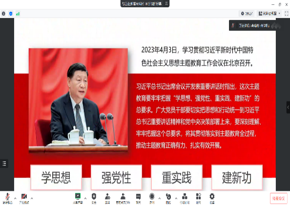 近日,学习贯彻习近平新时代中国特色社会主义思想主题教育工作会议在北京召开。习近平总书记出席会议并发表重要讲话时指出,这次主题教育要牢牢把握“学思想、强党性、重实践、建新功”的总要求。广大党员干部要切实把思想和行动统一到习近平总书记重要讲话精神和党中央决策部署上来,要深刻理解、牢牢把握这个总要求,将其贯彻落实到主题教育全过程,推动主题教育正确有力、扎实有效开展。为此会计支部于2023年5月31日开展了以“学思想、强党性、重实践、建新功”为题目的主题党日活动,由支委委员高瑜彬老师给大家讲授。