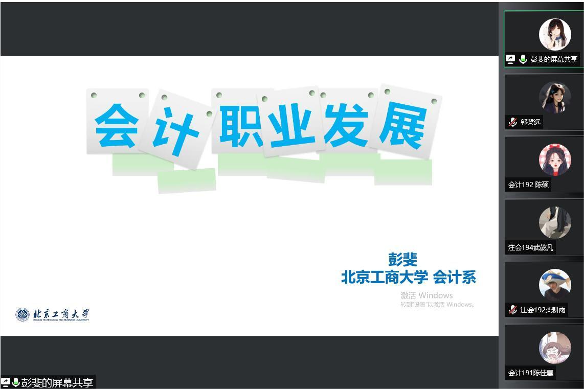 会计系彭斐老师作为新入职北京工商大学的优秀青年教师,以“人生不是轨道,是原野”为主题,通过分享她本人的毕业求职经历,从职业可选路径、如何选择就业行业、如何提升自身技能、如何看待行业发展等四个方面入手,为同学们详细介绍了近几年的会计专业毕业生就业形势,以及如何在当前社会背景下找到自己的立足之地。彭老师希望同学们可以把就业放到人生维度去考虑,顺应时代发展,做好时间规划、不断学习,既要不断提升自我竞争度,也要放平心态、学会排解焦虑情绪。
