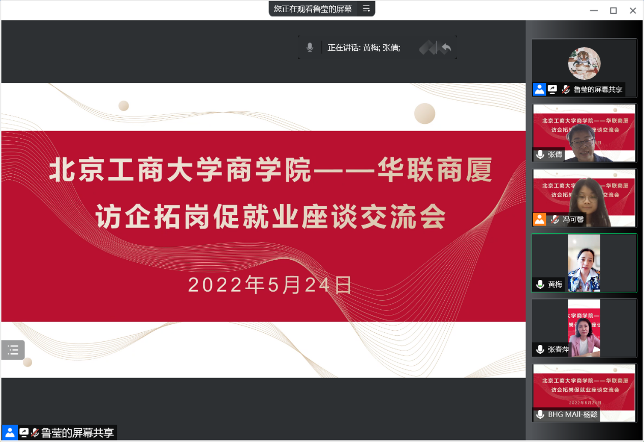 为进一步推动访企拓岗促就业专项行动,促进应届毕业生高质量就业,5月24日上午,赌博app下载 和北京华联商厦召开访企拓岗促就业线上视频会议。参加会议的有赌博app下载 党委书记张春萍、副书记张倩、辅导员鲁莹、邢佳媛、冯可馨,华联商厦人力资源总监黄梅和校招负责人杨懿,以及研究生毕业生代表。会议由张倩主持。