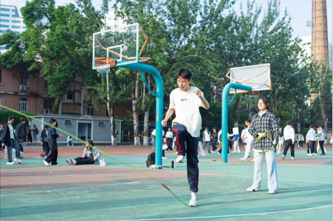 “呼呼呼呼”,跳绳划破空气,脚尖轻盈地起落,在地面谱写跳跃的音符,将活力与热情,组成青春的行进曲。
