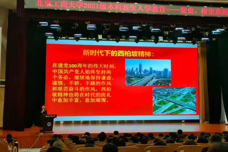 9月11日上午,学校对2021级新生开展了党史校史宣讲会,旨在让新生更深入地了解北京工商大学及其深厚的历史底蕴和校园文化,让同学们尽快融入到校园生活中来,同时向同学们讲解党史,拉进了新生与党的距离,鼓励大家积极加入到党组织中来,学会为人民服务,培养自己的奉献精神。同学们在活动后表示,要积极为母校争光,努力将自己学到的知识应用到未来祖国的发展事业中去。