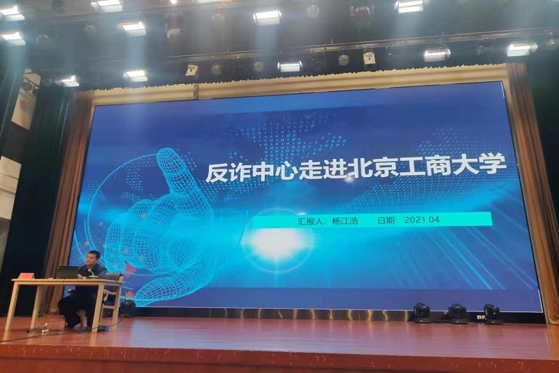 杨江浩警官以“反诈中心走进北京工商大学”为题为师生带来了一场精彩的讲座。讲座伊始,杨警官通过简单的技术操作向与会师生现场模拟演示了个人信息是如何泄露和被获取的,生动鲜明地为同学们讲解了电信诈骗的危害性,提醒大家要不断提高警惕,做好个人信息保护;之后详细讲解了电信网络诈骗的高发现状、典型类型及施骗手法、断卡行动与校园安全等内容。他介绍了电信网络诈骗的概念及发展,通过生动形象的案例逐一讲解了电信网络诈骗的主要类型,分别是“裸聊”敲诈类诈骗、网络贷款类诈骗、刷单类诈骗、冒充客服类诈骗、“杀猪盘”类诈骗、冒充公检法类诈骗、冒充学校老师骗家长、冒充老板骗财务人员、网络游戏产品虚假交易诈骗等。其中,以“杀猪盘”形式的诈骗损失最为惨重,通常是通过交友平台寻找诈骗对象,欺骗感情后进行诈骗,经济损失常常以“百万”起步。