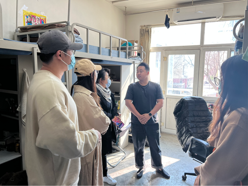 4月8日,赌博app下载 党委副书记张倩与本科年级辅导员一同走访良乡校区学生宿舍看望在校本科生;老师们关心大家上网课的情况和学习效果,了解大家在校期间的生活状况,提醒毕业生同学安排好学业和就业,提醒学生要注意身体健康,坚持锻炼身体,保持健康的生活方式。