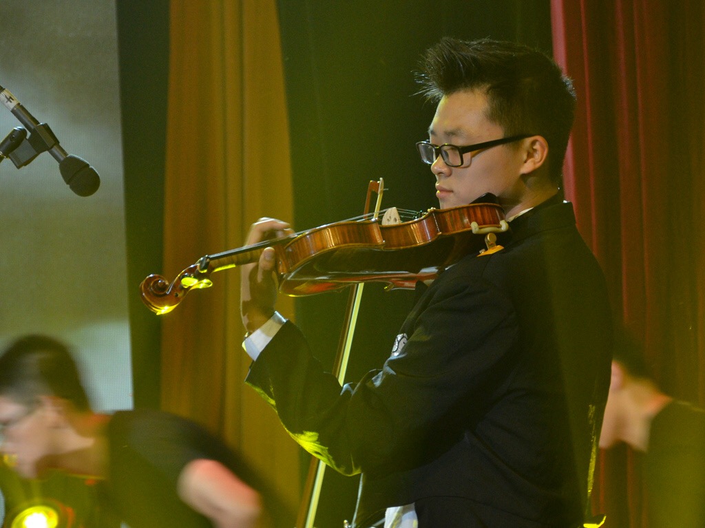 汇聚全场目光。樊江涛副书记亲自参与其中,更是让同学们为之振奋。气宇轩昂的樊江涛副书记以一首澎湃昂扬的诗朗诵将现场观众的情绪瞬间点燃。樊书记慷慨激昂的朗诵,不仅为接下来的演唱拉开序幕,更为所有参与其中的同学极大的鼓舞。在樊书记的引领下,一首《我的中国心》,唱出了炎黄子孙对祖国的挚爱深情,唱出了商院学子对祖国的深情赞美和无限向往,鼓点节奏与少年拳更将现场气氛推至顶峰。