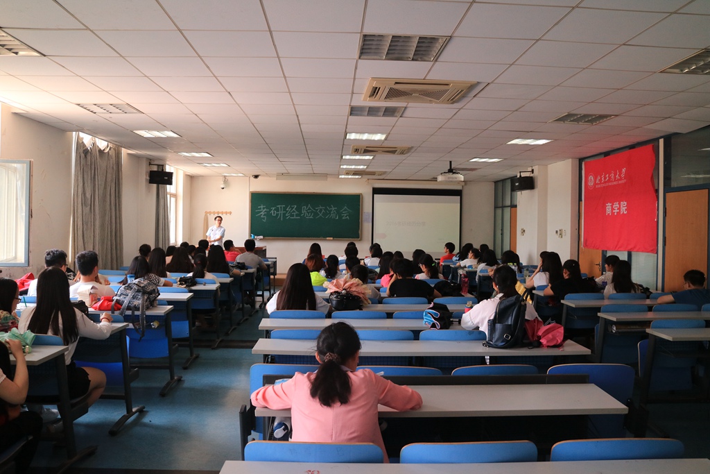 辅导员寇明雯老师组织举办、社团部协办的考研经验交流会于科研楼103室顺利开展。14级辅导员寇明雯老师出席了此次活动。此次交流会非常荣幸地请到了朋辈讲师张梦飞、刘昊天、朱鹏飞,他们分别考入了中国财政科学研究院、北京工商大学、北京理工大学的研究生。