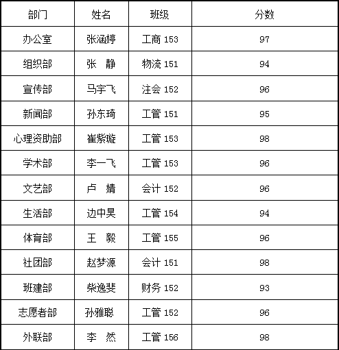 2015~2016学年赌博app下载 5月份“新星干事”公示表