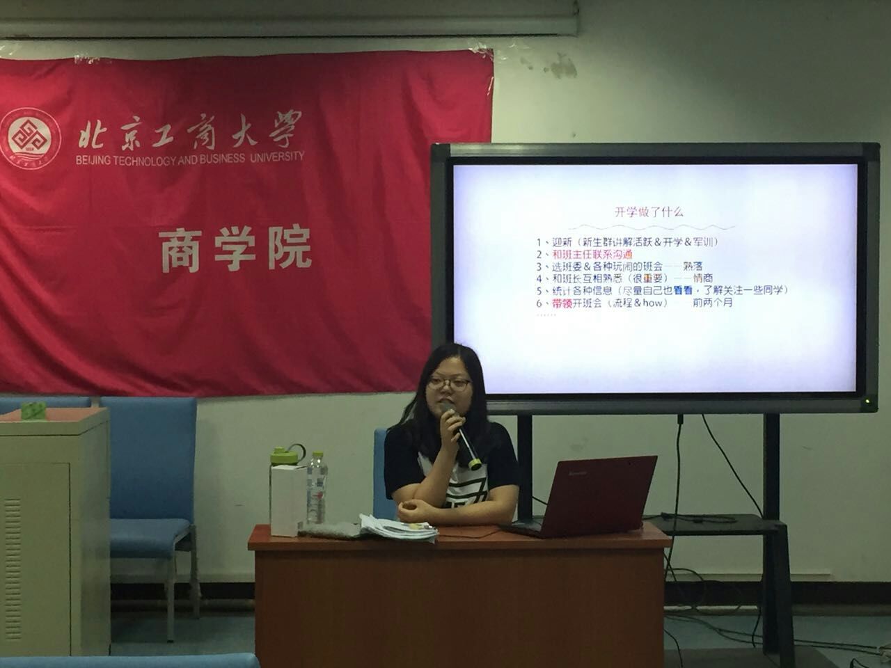一番简单的自我介绍后,大家对在今后一年中携手工作、相互配合的工作伙伴有了初步了解,并对彼此未来的合作充满信心。为帮助新任辅导员助理、班主任助理对工作有更深入的理解,班建部特邀请优秀辅导员助理王德轩和优秀班主任助理孙儒佳为大家分享工作心得,传授工作经验,为2016级新任辅导员助理与班主任助理答疑解惑。