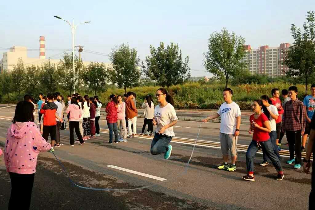 还组织进行了跳大绳活动,每位同学都积极地参与其中,在初升太阳的映射下,大家跳跃的身影蓬勃而又充满朝气。
