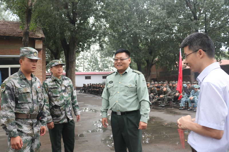 党委副书记樊江涛、副院长毛新述、工商管理系主任曹正进、16级班主任支春红、苏峻、王仲兵、毛新述、任晨煜、蒯鹏州、冯颖如、崔丽长途驱车到康庄军训基地看望慰问2016级参训学生和军训教官。