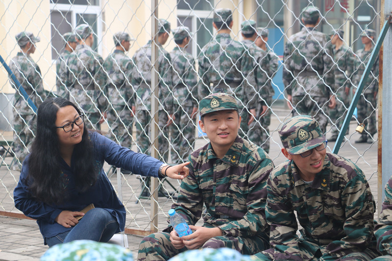 的关心和温暖。老师们的到来是对军训的新生们最大的安慰,大家欢呼鼓掌,灿烂的笑容,刻苦的训练是对老师们最好的回馈。