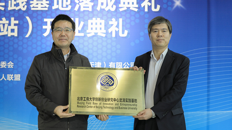 院长王国顺向武清开发区总公司总经理张绍锋授牌,标志着北京工商大学创新创业研究中心武清实践基地正式落地,标志着我校与武清区的产、学、研、用一体化更进一步。