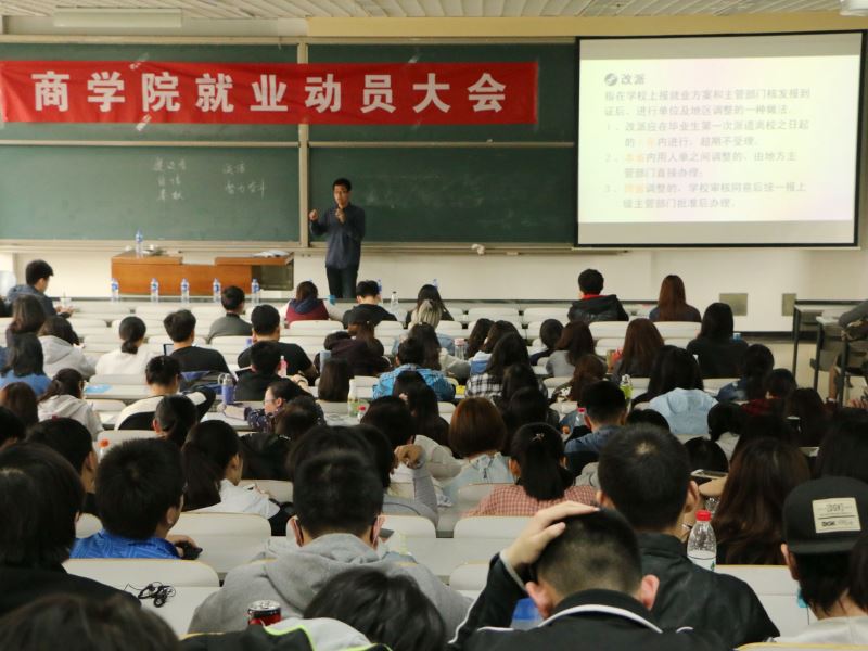 党委副书记樊江涛首先向大三学生做了动员,号召同学们合理定位,做好充分准备,以诚心和信心走向职场,成为社会主义事业的建设者和接班人。他鼓励同学们树立创业创造思维,在升学深造和步入职场之间做好选择,在剩下的大学生涯中围绕目标勤奋学习,积极实践,丰富自身的学识和本领,脚踏实地地从基层做起,不断地开拓进取,献身国家建设。