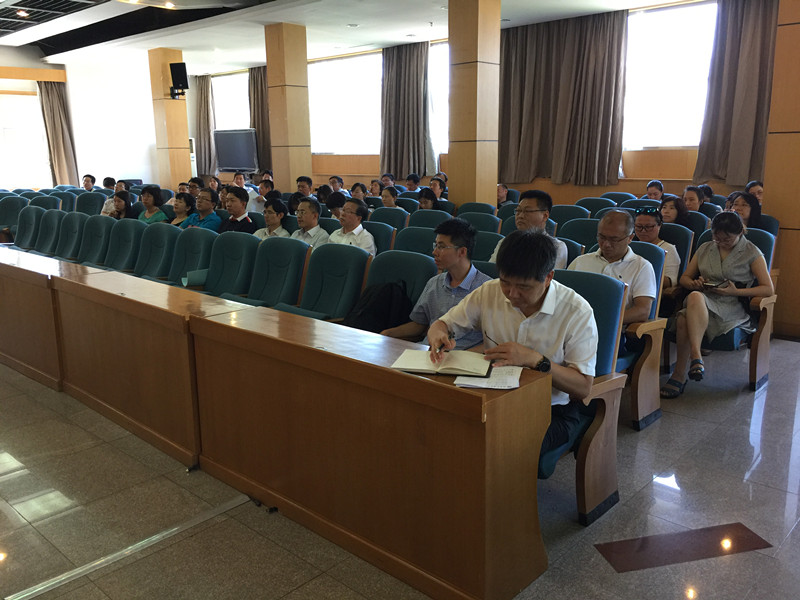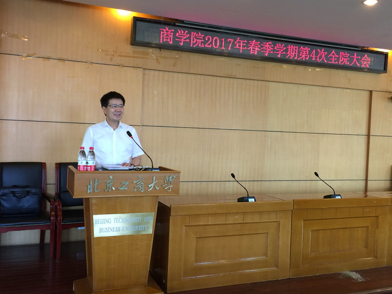 全体教师在综合楼三层报告厅召开本学期第四次全院大会,会议由院长王国顺主持。