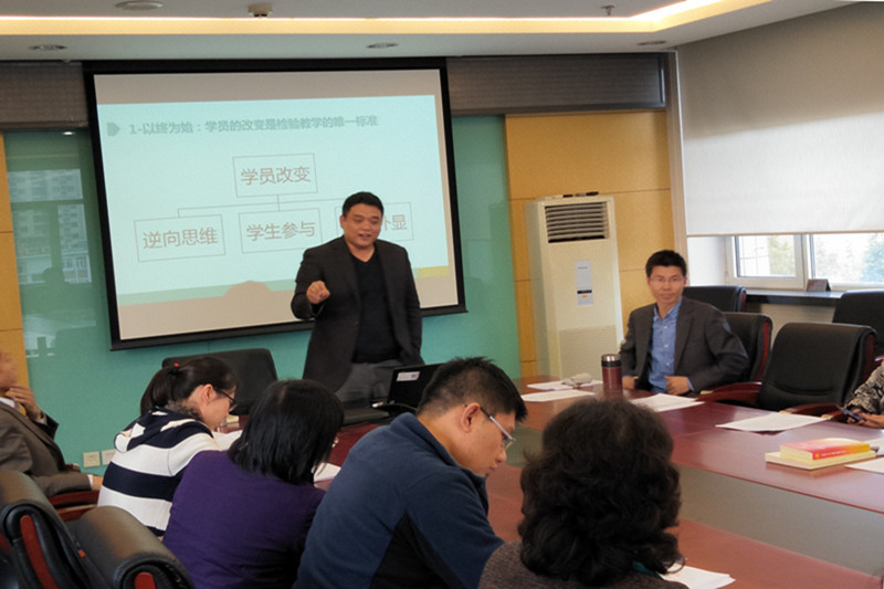 针对会计系年轻教师较多,教师注重内容研讨而对课程设计和教学方法重视不足的特点,本次期中教学检查活动特别邀请“老周教法”的创造者、我校文科实践中心的周付安老师为全体教师举办了“教学设计:从0到1”的讲座。周老师结合教育教学理论、心理科学、脑科学以及其自身丰富的教学体验,讲述了如何通过设计教学过程和教学方法实现以学生为中心、提高学生参与度及融会贯通的效率,如何更轻松更愉悦地完成教学目标。他认为,要首先观察学生的能量状态和学习积极性,针对学生不同的能量状态和学习投入积极性采取不同应对策略,如发现学生能量状态高但无法聚焦学习内容时,可以采取一起数指头、拍桌面、跺跺脚的方式迅速提升学生精神投入水平。在此基础上,通过五步实现良好课程设计,一是以终为始,准确定义学习目标,要可观察、有结果、具体有操作性,二是通过输入和转化实现知识构建,三是进行“描述目标-导向目标-评估目标”的正反馈过程,四是进行知识的提取-理解-分析-应用,五是评估教学设计和教学活动是否符合五星教学原理。周老师结合案例,详细讲述了如何把五星教学原理运用于教学过程之中。在讲座过程中,周老师案例丰富、联系课堂实际,生动形象的传授了很多实用的方法和工具,参会教师积极参与、进行真实课堂模拟并展开互动,气氛热烈,轻松愉悦,在讲座参与及讨论过程中开阔了眼界、增长了技能,大家纷纷表示受益匪浅。