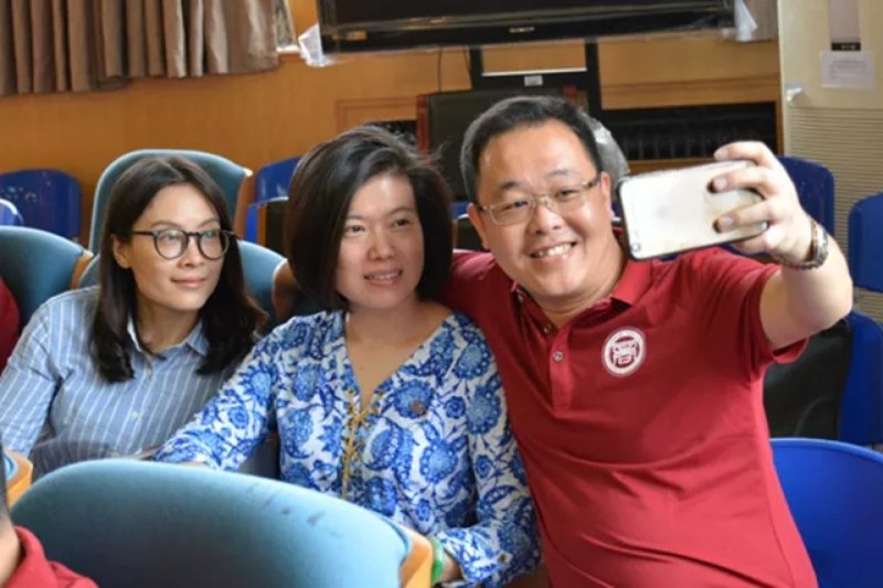 小雨润湿的清晨,校友们早早赶来报到,如同重复着数十年前那个青葱学子入学报到的场景。他们换上红色纪念衫,拥抱问好,结伴游览,火红的衣与火红的心结成校园里一片美丽的风景。