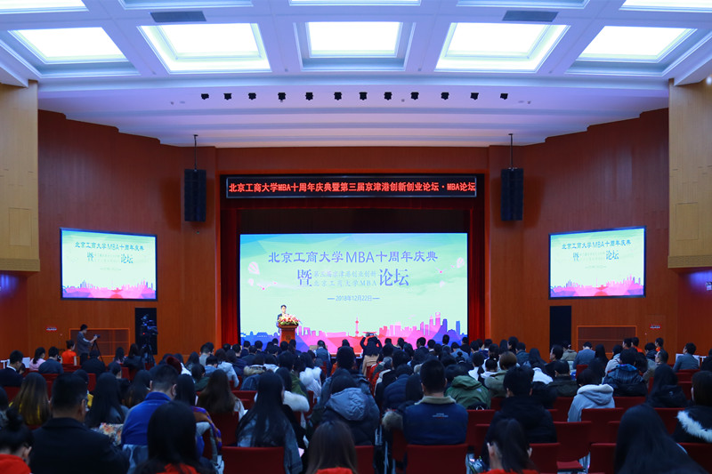 近日, 北京工商大学MBA十周年庆典暨第三届京津港创新创业论坛·北京工商大学MBA论坛在北京工商大学隆重举行。京津港地区代表、北京MBA联盟代表与北京工商大学MBA校友代表、广大学子齐聚一堂,聚焦三地协同发展,共同见证北工商MBA十年发展成果。庆典活动由赌博app下载 副院长兼MBA中心主任杨浩雄主持。