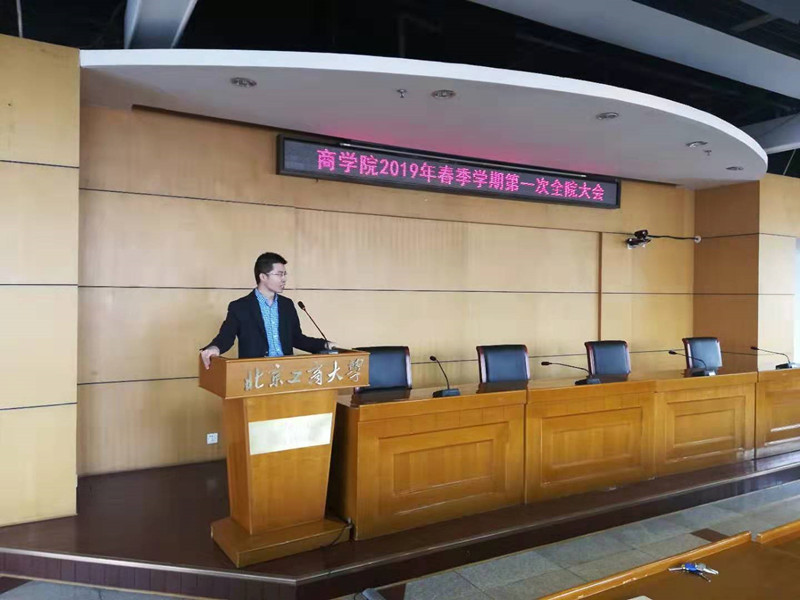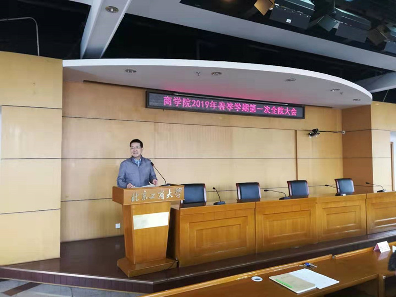在综合楼三层报告厅召开2019年春季学期第一次全院大会,大会由王国顺院长主持。