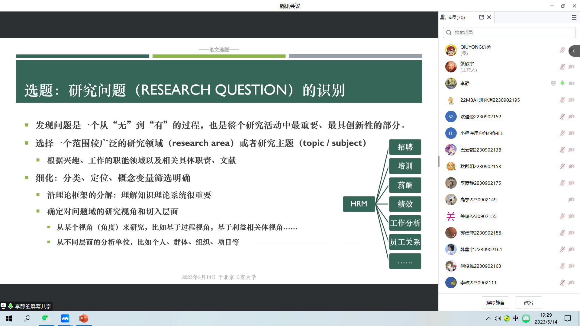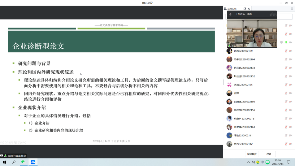 为指导赌博app下载 MBA专业学生如何明晰选题、规范撰写学位论文,2023年5月14日19:00,赌博app下载 MBA教育中心举办《学位论文选题与写作规范》讲座,邀请北京师范大学经济与工商管理赌博app下载 、MBA教育中心李静副主任为同学们指导答疑。讲座由工商管理系仇勇副主任主持,赌博app下载 MBA中心执行主任何辉以及70余名MBA研究生参加。