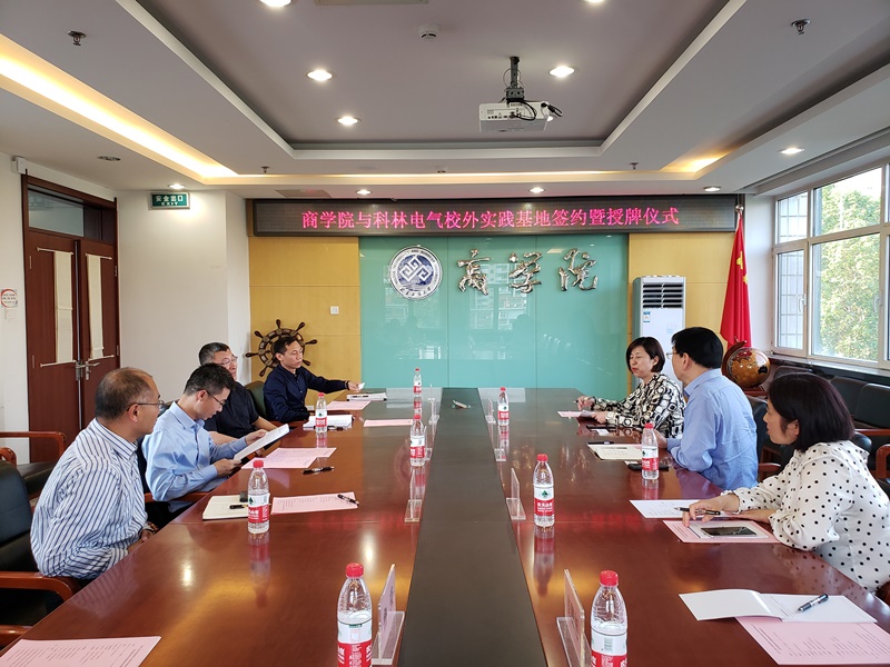 与石家庄科林电气股份有限公司(以下简称科林电气)联合建设校外实践基地签约暨授牌仪式在综合楼501举行。科林电气董事长张成锁、董事副总裁董彩宏、人力资源部主任丁魁静和员工代表出席仪式。赌博app下载
