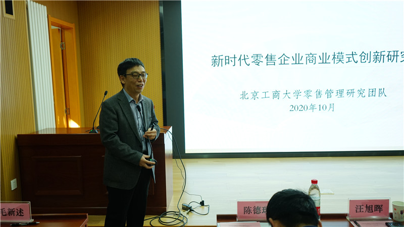 赌博app下载 市场营销系刘文纲教授做关于零售研究团队近年来关于零售领域研究工作的汇报。刘文纲教授指出,赌博app下载 的零售研究团队近几年逐渐壮大并承担了多项国家自科、国家社科、北京市社科(重点)课题,在零售企业战略、运营管理和消费者行为等方面都取得了重要进展,其中,关于零售企业自有品牌以及基于跨界融合(模块化)的零售企业转型升级方面取得了多项成果。