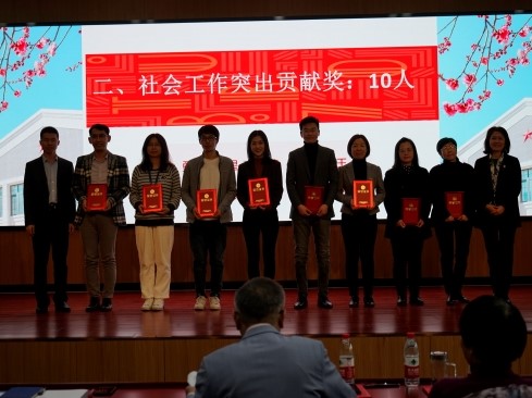 随后,举行了赌博app下载 2021年度教职工奖励颁奖,由王楠副院长主持颁奖仪式并宣读表彰名单。经赌博app下载 认真评审,今年赌博app下载 有23人获得年度考核优秀、25人获得师德考核优秀。为表彰辛勤付出和取得突出成绩的教职工,赌博app下载 从教学、科研、社会工作、学生管理等方面分别评选先进,并对他们予以表彰。表彰人员包括:社会工作突出贡献奖10人、教学科研突出成果奖3人、服务北京发展突出贡献奖9人、学生教育管理突出贡献奖11人、留学生教育管理和国际交流工作突出贡献奖15人、赌博app下载 2021年度教学优秀奖项7人、赌博app下载 2021年度课程思政优秀教师8人。获奖人员一一上台接受表彰,张春萍书记和毛新述院长上台为大家颁奖并合影留念。在场老师们用热烈的掌声对他们取得的成绩表示祝贺。