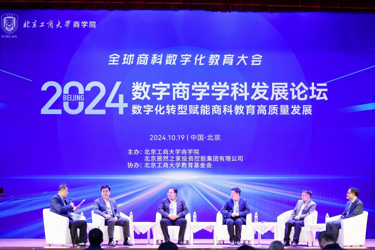 10月19日,由赌博app下载 、北京居然之家投资控股集团有限公司主办,北京工商大学教育基金会协办的数字化转型赋能商科教育高质量发展论坛在阜成路校区东区礼堂成功举办。本次论坛汇聚了兄弟高校专家学者、行业专家、期刊主编、校友及企业代表,共同探讨数字商科学科建设与人才培养。论坛分为开幕式、主旨演讲和圆桌论坛三个环节。会议开幕式由赌博app下载 院长何玉润教授主持。
