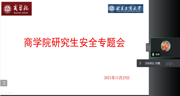 为落实好学校学生工作例会关于学生安全稳定方面的有关要求,做好安全教育宣传实践月有关活动,切实开展好本科生及研究生的安全教育与学生管理服务工作,赌博app下载 于2021年11月24日、25日中午分别召开本科生、研究生安全专题线上会议。会议主要围绕校园安全教育这一主题,旨在提高在校本、研学生的安全意识,营造健康安全的学习与生活环境。本科生会议由辅导员李嘉伟老师主持,研究生会议由辅导员钱思老师主持,赌博app下载 党委副书记张倩进行了讲话,赌博app下载 辅导员、本研所有班级的班长、副班长(安全委员)、宿舍安全专员及宿舍长540余人参加会议。