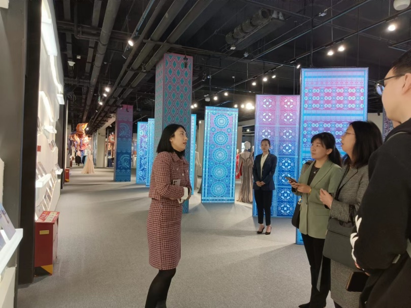 陶悦带领大家参观依文城堡文化展区,详细介绍了依文集团的发展历程、业务范围、赌博app下载、团队构成等方面情况。据了解,依文集团成立于1994年,至今已发展成为集自主品牌、产业互联网、文化产业整合及防护防疫产业平台四大业务板块为一体的大型集团企业。多年来,依文集团在服装行业智能化与数字化方面不断探索与创新,依托产业互联网创新模型,链接海量工厂资源打造服装产业严选供应平台。同时致力中国传统手工艺的传承、保护与创新,搭建传承中国传统手工艺的国际文化平台,通过传承与发扬中国传统手工艺助力乡村振兴。