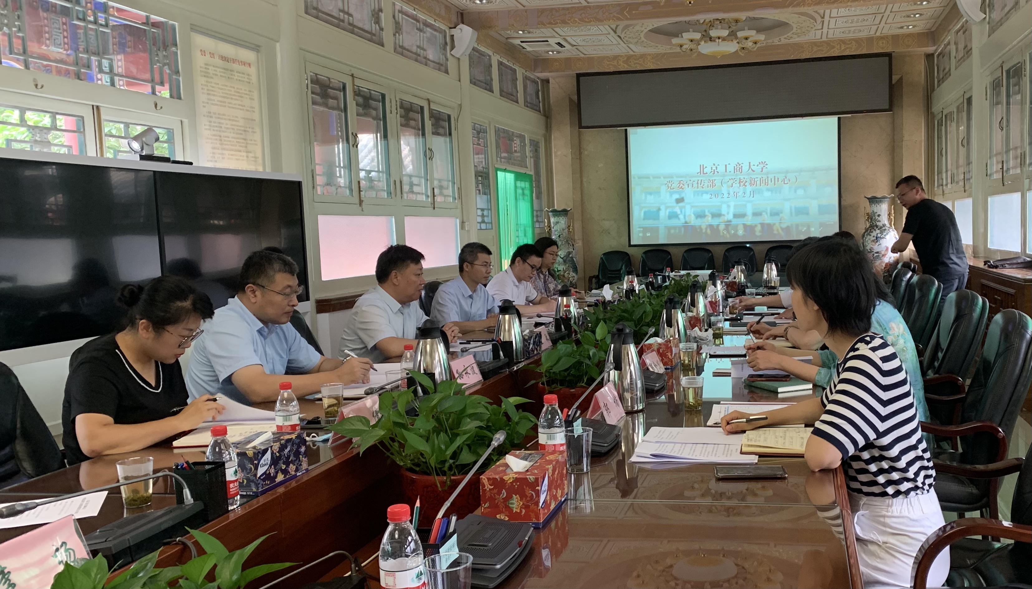 座谈会前,与会人员共同观看了北京工商大学和北京同仁堂集团宣传片,对双方的发展历程、领导关怀、事业发展等情况有了系统了解。