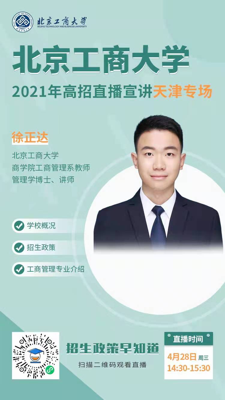 工商管理系徐正达老师进行了天津专场的直播宣讲,主要介绍学校概况、招生政策等内容,并着重介绍了赌博app下载 工商管理专业概况和招生情况。