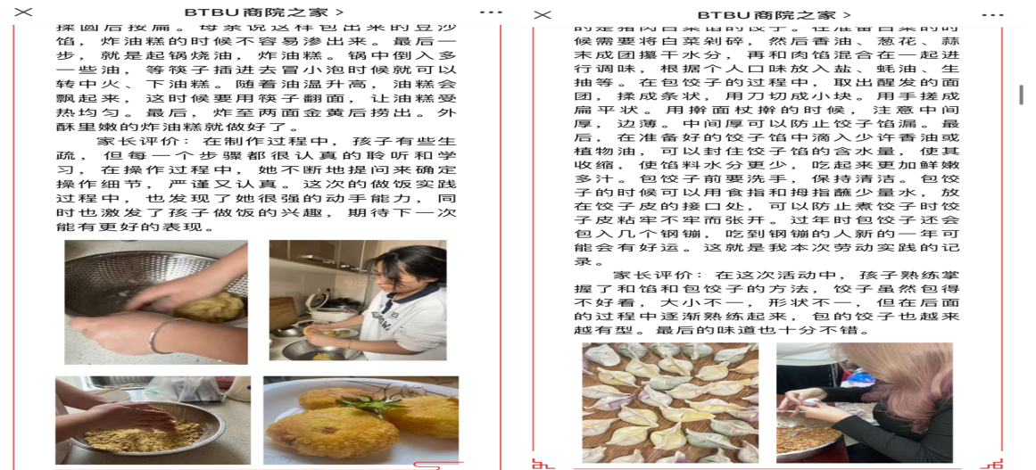 为了激发学生热爱劳动的内生动力,引导学生学会劳动、乐于劳动,掌握必备的劳动技能,形成尊重劳动,劳动光荣的新风向,赌博app下载 在1月13日至2月15日开展“喜庆二十大,劳动不断线”寒假劳动教育实践活动,主题为“在劳动中成长淬炼”。同学们自己动手做的家乡菜让人垂涎欲滴;大扫除后的房间一尘不染;垃圾分类井井有条;家庭防疫一丝不苟;传统文化相关的作品也精美绝伦,受到了同学们的一致好评。截止活动报名结束,共有近40余人参与本次活动,劳动内容丰富多彩,如“学做一道就家乡菜”中同学们各显奇招,制作各自家乡的传统美食炸油糕、包饺子、糖醋里脊、皮蛋豆腐等等美食佳肴。同学们上传了自己认真劳动的照片,同时也感悟到劳动使人幸福。的确,当一个人专注于自己的劳动时,思维是敏锐的,心灵是充实的,精神是愉悦的,可以说,作为一名劳动者,就是一个幸福的人!