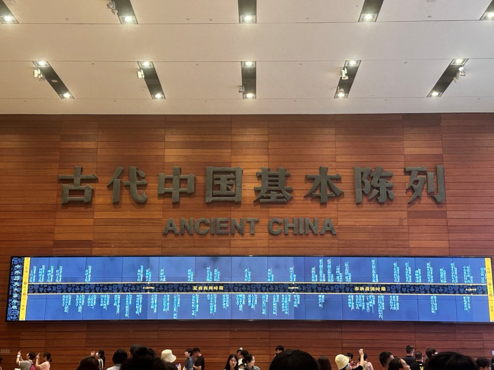 “古代中国”以王朝更替为主要脉络,较为全面展示了远古时期、夏商西周时期、春秋战国时期、秦汉时期、三国两晋南北朝时期、隋唐五代时期、辽宋夏金元时期和明清时期在政治、经济、文化、社会生活以及中外交流等方面的发展状況,突出展现了中华文明绵延不绝的发展特点和各族人民共同缔造多民族国家的历史进程,展现了中华民族所取得的辉煌成就和对人类文明所做出的伟大贡献。大家表示在这里进行了一场时空对话,看到了中华上下五千年不朽的文化发展,体验了一场视觉盛宴,对中华文化发展之迅速,叹为观止;同时,感叹古人的技艺精湛,为我国留下不朽的瑰宝,大家都表示感受到了中国古代劳动人的勤劳与智慧。
