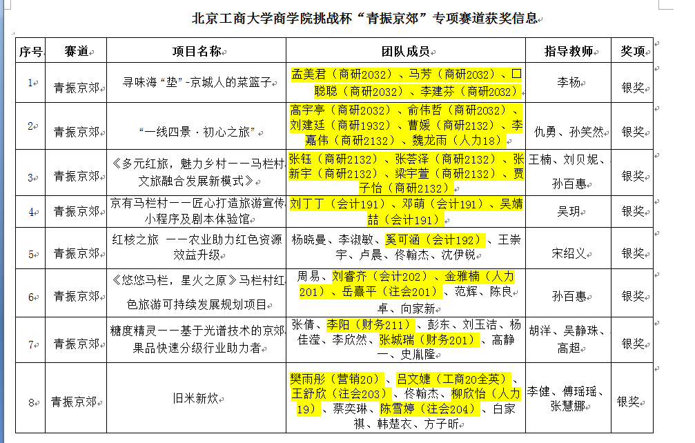 近日,“青创北京”2022年“挑战杯”首都大学生创业计划竞赛结果公布。赌博app下载 本研学生在“挑战杯”中收获颇丰,由赌博app下载 学子担任项目负责人和赌博app下载 教师指导的项目共计60名学生、14项作品获奖,包括“青振京郊”专项赛道作品9项、“青创副中心”专项赛道作品4项、“青力冬奥”专项赛道作品1项,囊括银奖9项、铜奖5项,取得新突破。另有41名学生积极参与其他赌博app下载 的团队项目,也在此次市级比赛中获得了奖项。据统计,商院学子担任负责人或参与人的获奖项目共计38项,金奖7项、银奖21项、铜奖10项,共有101名在校本研同学获奖。