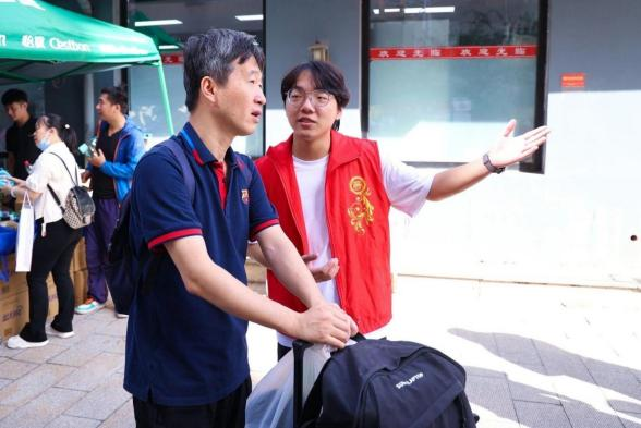 迎新当天,校领导走访赌博app下载 迎新区,看望新生和迎新工作人员。