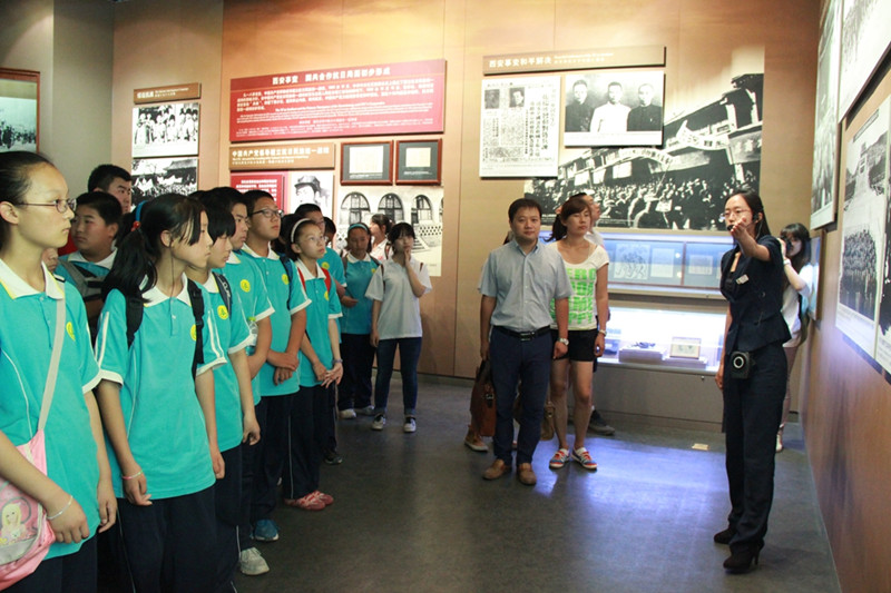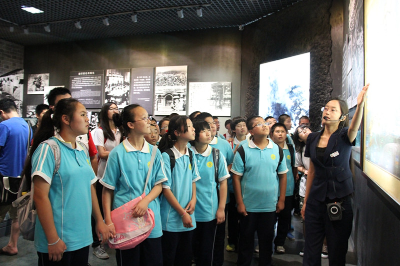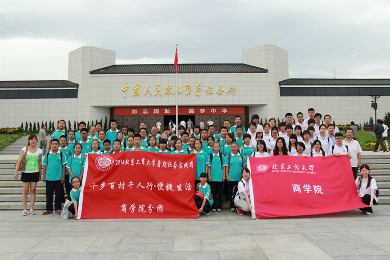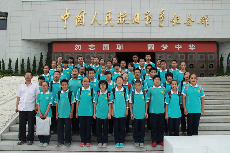 7月8日,北京工商大学暑期社会实践分团支教老师与长沟中学的师生们在中国人民抗日战争纪念馆开展实践活动,纪念全民族抗战77周年暨抗战胜利69周年。