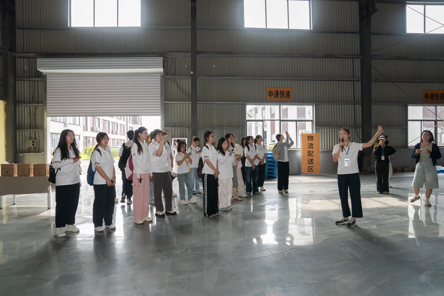 由专业教师徐正达、蒯鹏州指导,党委副书记张悦、团委书记赵杰带队,实践团深入产业链后端——产业园运营腹地进行调研,系统了解、重点学习“三链驱动”模式如何赋能从选品、育才到品牌打造、智能仓储配送的全链条。