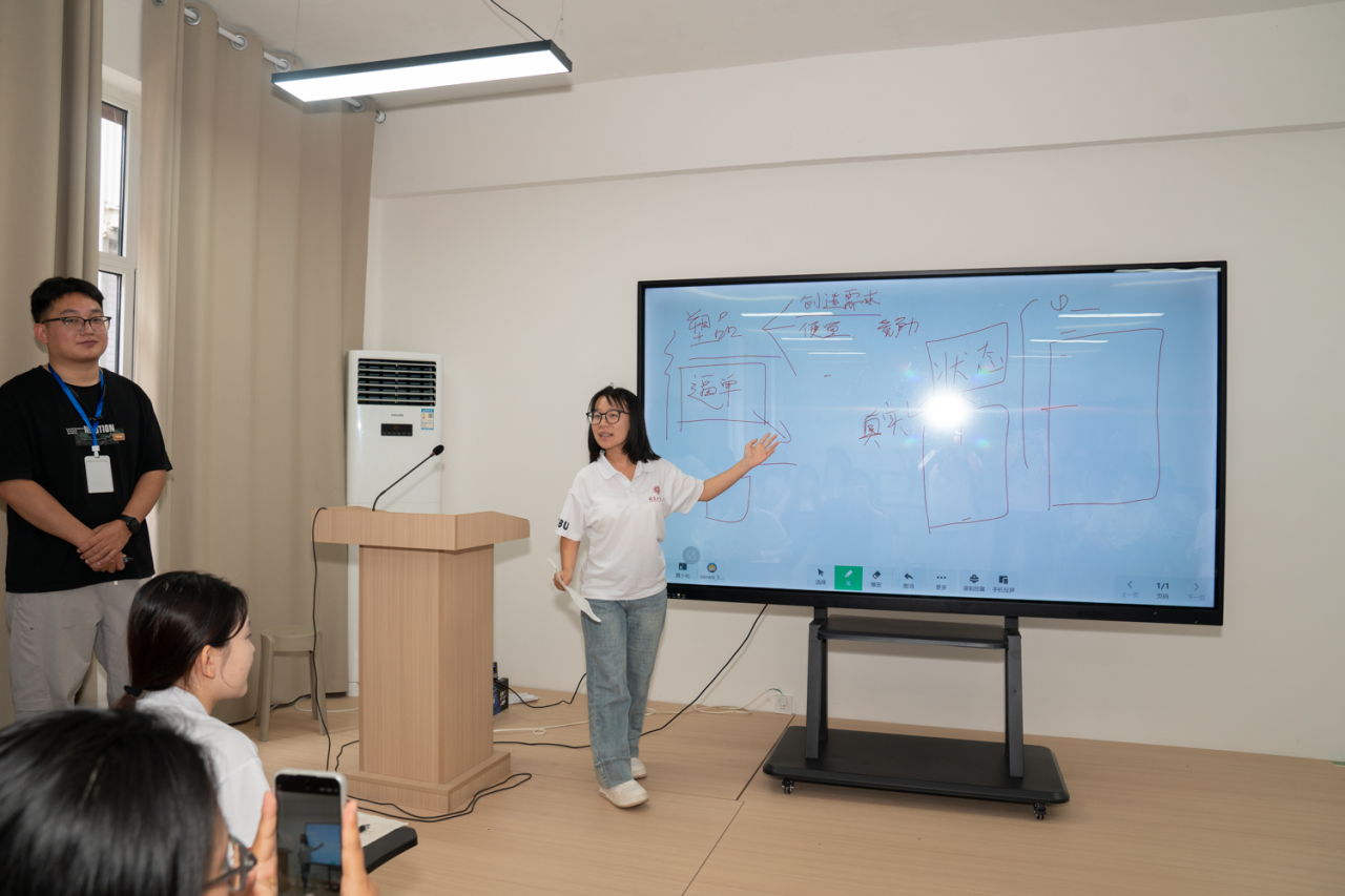 在前期培训中,实践团成员向专业导师、资深主播学习塑品和逼单的话术与技巧,吃透电商运营逻辑。在导师指导下,大家结合产品特色,自主撰写打磨脚本、设计互动,并在模拟演练中积极展示、相互配合,迅速提升实战能力。