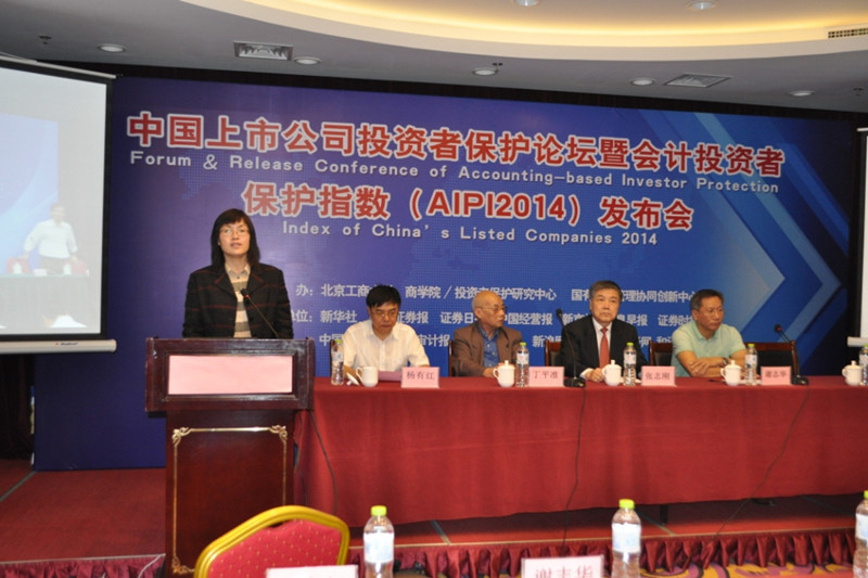 中国投资者保护指数简介:在北京市教委专项资金及国家社科基金、教育部社科项目等的资助下,北京工商大学依托会计优势学科,组建了以谢志华、杨有红为首的会计投资者保护团队,成立了全国高校首个投资者保护研究中心,开展了会计投资者保护的深入研究,发表了一系列相关研究成果。2011年1月和11月、2012年10月、2013年9月及2014年9月,投资者保护项目组四次发布项目成果:中国上市公司会计投资者保护指数(AIPI2010、2011、2012、2013、2014),在国家相关部门、学术界和企业界引起了较强的反应,被社会称为“上市公司会计投资者保护的晴雨表”。