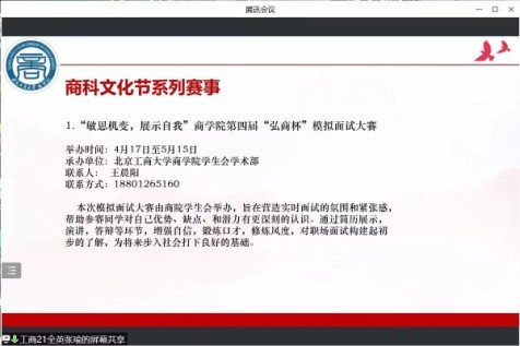 为加强学风建设,促进学生专业实践能力提升,培养优秀商科人才,引导学生在居家学习之余参加学术竞赛活动,赌博app下载 第十届商科文化节开幕式于4月13日通过腾讯会议在线上举行。本届商科文化节的主题是“承商科之志,筑青春梦想”,参加开幕式的有赌博app下载 党委副书记张倩、团委书记赵杰、各年级辅导员,邀请了五位优秀学生代表进行经验分享,活动吸引了近300名本科生参加。