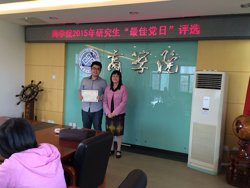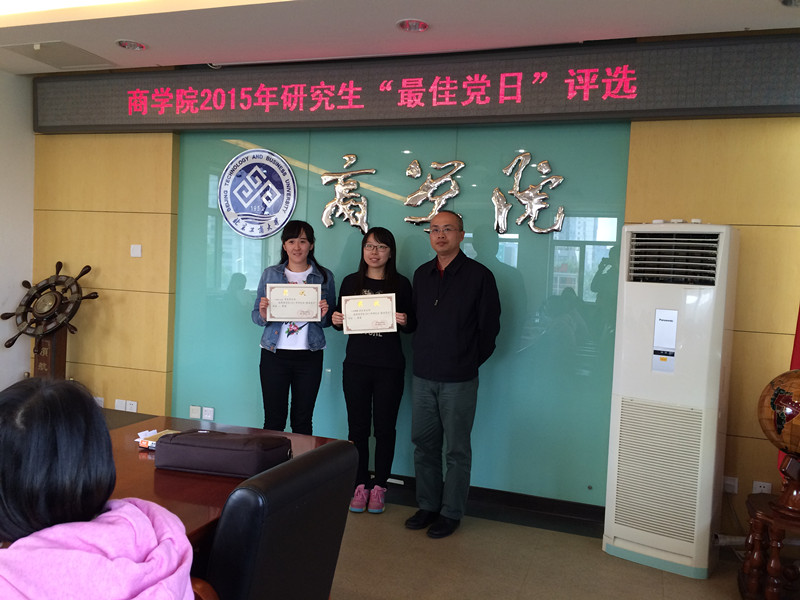 2015年研究生“最佳党日活动”的获奖支部现场颁奖。