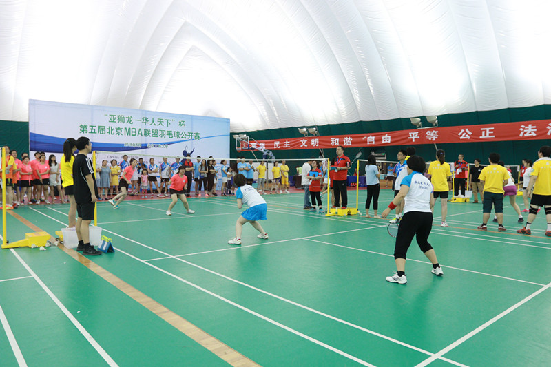 5月30日、6月6日,由北京MBA联盟主办,北京工商大学MBA教育中心、北京工商大学MBA联合会承办的“亚狮龙-华人天下”杯第五届北京MBA联盟羽毛球公开赛在中央电视塔健身中心如期开赛。包括北京大学、清华大学、中国人民大学、北京师范大学在内的22所具有MBA教育办学资格的北京地区高校参与本次赛事。该赛事作为北京MBA联盟的传统活动,至今已成功举办了四届。作为北京三十余所高校MBA学生相互学习合作共进的重要平台之一极具号召力和影响力。通过我校MBA教育中心和MBA联合会的积极申办,成功获得本次比赛的承办权,这是我校自2007年获得MBA办学资格以来首次举办如此大规模的校际间活动。