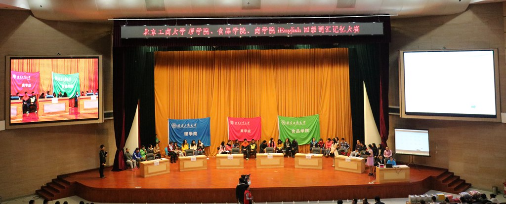 为激发2015级新生学习英语的兴趣,引导新生尽早投身英语四级考试的学习准备中,2015年11月11日晚间,赌博app下载 、食品赌博app下载 和理赌博app下载 在良乡校区学术报告厅联合举办了“iEnglish”英语四级词汇记忆大赛决赛。校党委副书记张德玉莅临现场观摩指导,与三院党委副书记、辅导员和500余名新生观看了比赛。