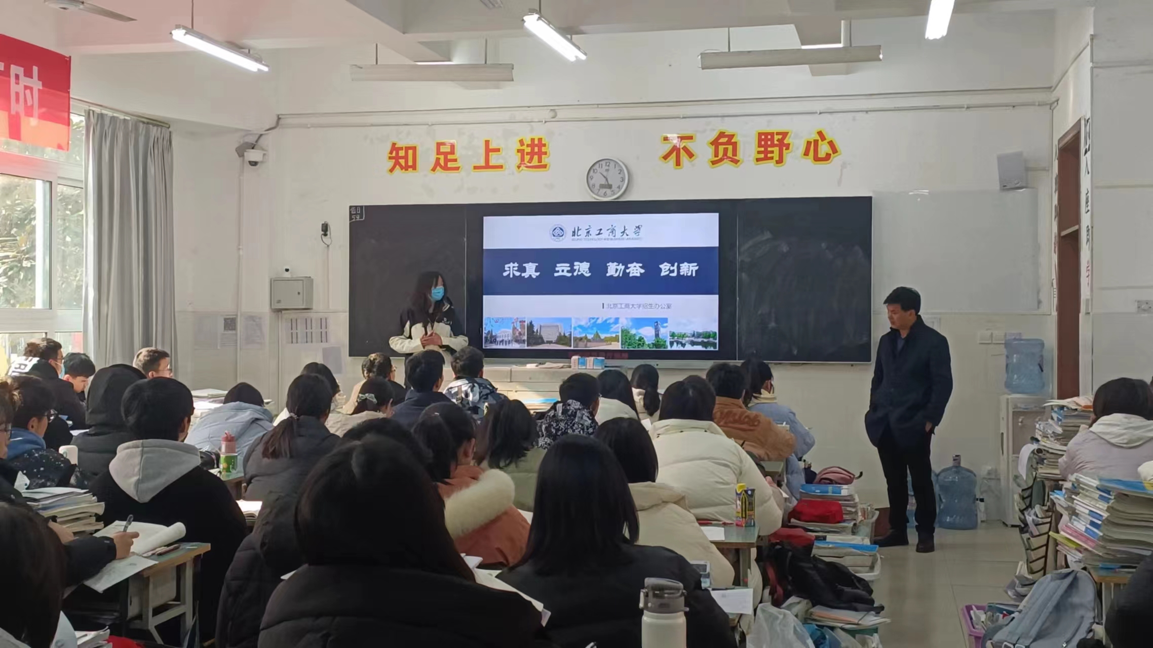 在宣讲过程中,高三学生们都很认真地听并且时不时地询问相关问题,看到学弟学妹们的热情与用心,我内心很欣慰。在宣讲末尾,我给学弟学妹们提出一些高三备考建议并鼓励他们去内地求学与发展,走出新疆,开阔眼界。同时,也非常欢迎学弟学妹们报考北京工商大学,遇见更美好的自己。