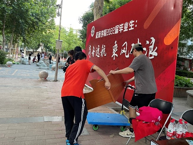 最忆是青春!本着“以学生为本”的理念,赌博app下载 在两校区设立“商舟远航 乘风破浪”毕业展板,以供毕业生签名、合影留念,借此为2022届毕业生送出最美好的祝福,留在北工商校园里最温情的回忆。赌博app下载 提前为所有本研毕业生购买行李打包所需编织袋、胶带等必需品,提前布置好爱心点,为学生准备好小推车、口罩、胶带、绳子、矿泉水等用品。