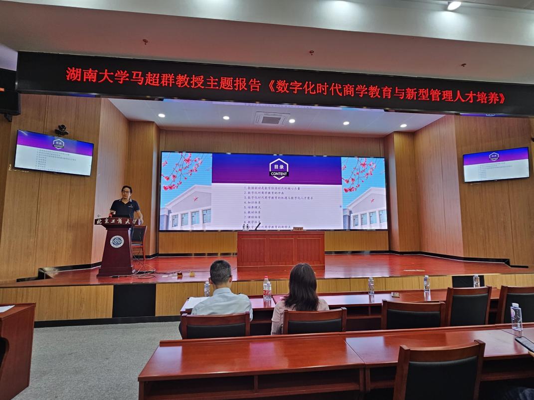 6月6日下午,由数字商科与首都发展创新中心、赌博app下载 、电商与物流赌博app下载 联合举办的“数字商科名家讲坛”主题活动在综合楼三层会议室举行。湖南大学工商管理赌博app下载 马超群教授以“数字化时代商学教育与新型管理人才培养”为题,为我校商学教育相关教师带来一场精彩讲座。马超群教授是教育部“长江学者”特聘教授、国家杰出青年科学基金获得者、“高性能分布式账本与数字金融”教育部重点实验室主任、数字社会与区块链研究院院长。赌博app下载 、电商与物流赌博app下载 教师参加报告会,报告会由赌博app下载 院长毛新述主持。